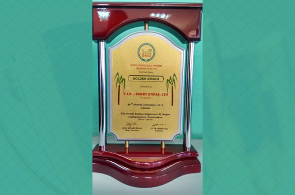 • The Platinum Award for ‘Best Distillery for 2018-19’ in Tamil Nadu from SISSTA (South Indian Sugarcane & Sugar Technologists’ Association) to Nellikuppam distillery.
