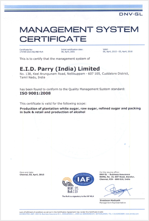Sugar – Certifications